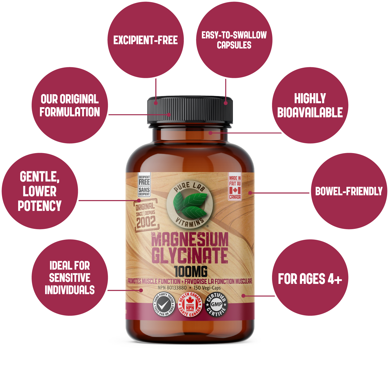 Experience magnesium support without unwanted digestive discomfort with Pure Lab’s Magnesium Glycinate 100 mg capsules.