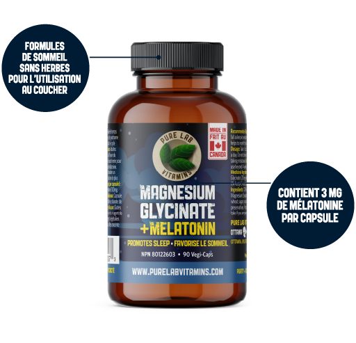 Le glycinate de magnésium + mélatonine de Pure Lab est une formule de sommeil naturelle qui fournit de la mélatonine et du glycinate de magnésium hautement biodisponible. Il s’agit d’une formulation sans herbe qui convient à l’utilisation au coucher. Notre formule contribue à réduire le temps nécessaire pour s’endormir chez les personnes atteintes du syndrome de retard de phase du sommeil et aide à réinitialiser le cycle de veille‑sommeil du corps. Elle favorise un sommeil plus profond, plus long et plus reposant. L’inclusion du glycinate de magnésium tient compte du fait que le magnésium nourrit au moins 300 activités métaboliques essentielles dans le corps, y compris la relaxation des nerfs et des muscles. En raison de l’ajout d’une faible dose de mélatonine, la combinaison favorise le rétablissement du cycle veille‑sommeil, l’ajustement au décalage horaire et une meilleure qualité de sommeil globale.