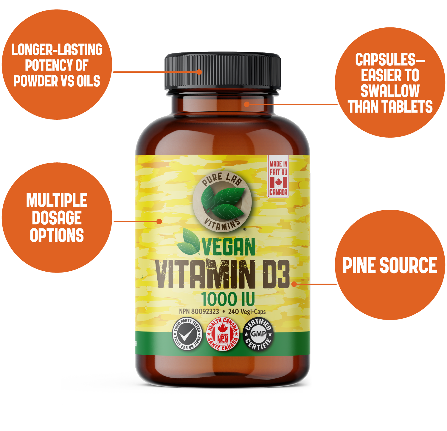 Considering all this, supplementing Pure Lab’s Vitamin D3 daily is an easier and safer way to provide a consistent dosage to your body.
