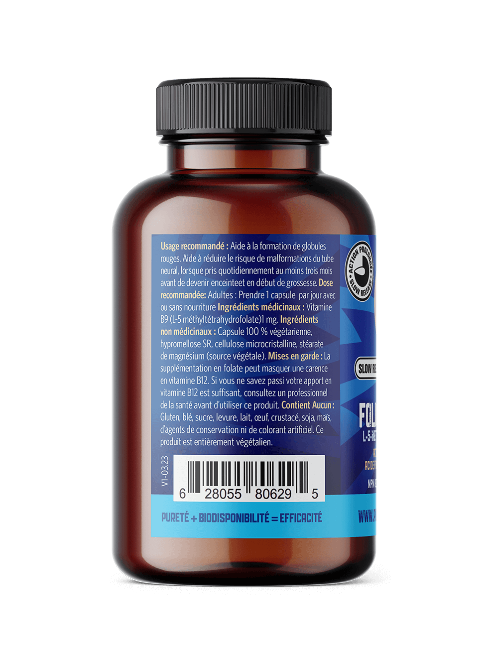 L’acide folique n’est pas seulement pour les femmes enceintes; c’est une vitamine essentielle pour tout le monde. L’acide folique (aussi appelé folate) effectue de nombreuses fonctions importantes alors qu’il est sous sa forme active, le méthyltétrahydrofolate. Le méthylfolate est nécessaire à la synthèse de l’ADN et de l’ARN, pour contrôler la croissance et la reproduction des cellules et pour soutenir la production d’hémoglobine. En plus des vitamines B‑2, B‑6 et B‑12, l’acide folique est nécessaire à la méthylation des acides aminés, à la conversion de niveaux toxiques d’homocystéine en méthionine et à la synthèse de nouvelles protéines.